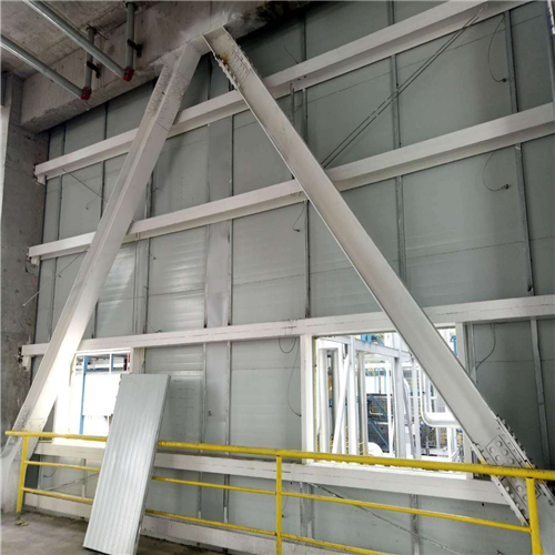 防爆墙由钢龙骨(镀锌方管100*50*3mm)和纤维水泥复合钢板(防爆板)及岩棉组成。防爆墙厚度120mm。纤维水泥复合钢板(防爆板)是由上下两块冲孔的0.5mm厚镀锌钢板压挤在8.5mm厚纤维水泥上构成的合成防火板材。夹在两层钢板中间的纤维水泥层具有吸收能量作用。